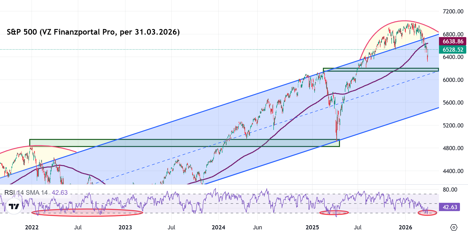 Der Volatilitätsindex VIX (ein Index, der die erwarteten Kursschwankungen am US‑Aktienmarkt misst und häufig als "Angstbarometer" bezeichnet wird) notierte zuletzt um 31 Punkte. Gleichzeitig zeigen Umfragen unter US‑Privatanlegern ausgeprägten Pessimismus: In der AAII‑Erhebung (Stimmungsumfrage der American Association of Individual Investors, eines US‑Anlegerverbandes) lagen die Bearish‑Stimmen Ende März bei rund 50 Prozent. Solche Extremwerte sind kein Garant dafür, dass die Kurse nicht weiter fallen können. Sie deuten jedoch darauf hin, dass Vorsicht und Absicherung bereits weit verbreitet sind – und damit ein Teil des Verkaufsdrucks womöglich hinter uns liegt.
