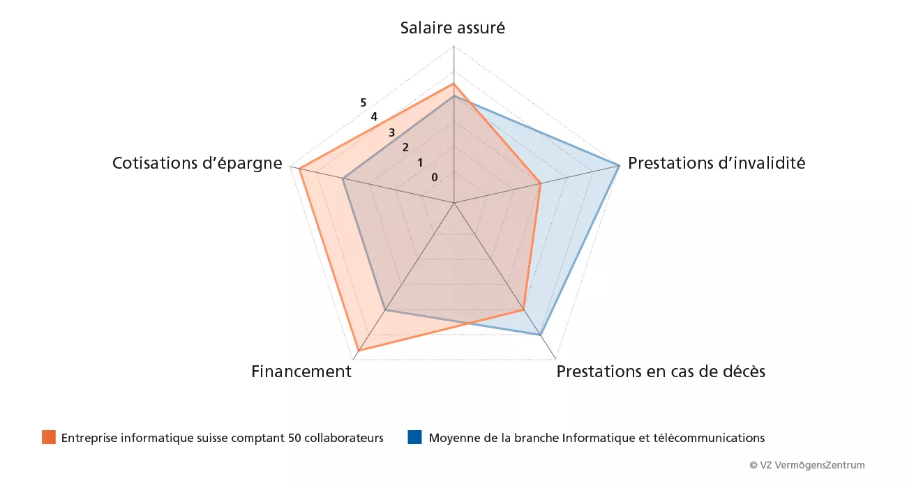 Prenons un exemple: une entreprise informatique suisse a fait établir le profil de sa caisse par VZ. Voici les points marquants de l’analyse (graphique):
